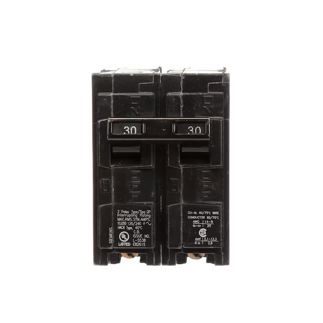 Disyuntor de disparo estándar Siemens QP de 30 amperios y 2 polos