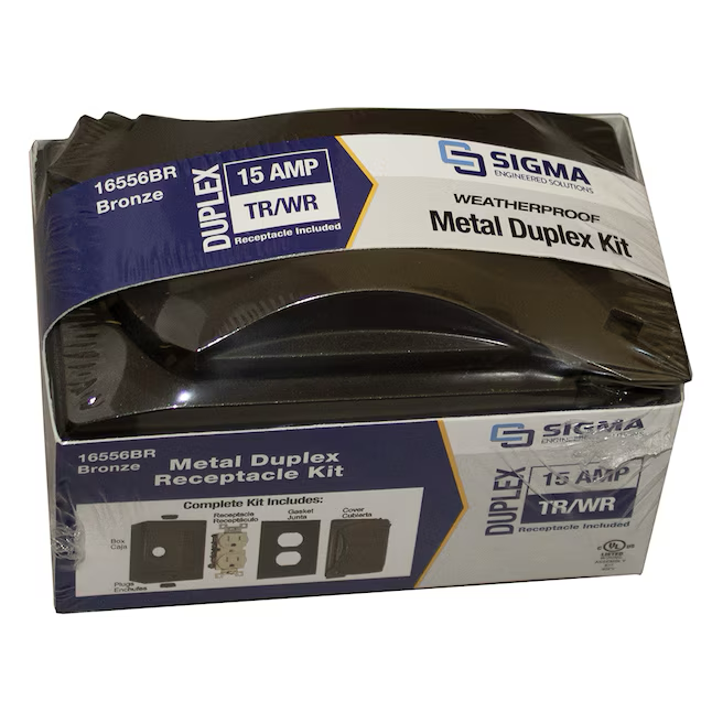 Receptáculo dúplex TRWR de 15 amperios incluido con cubierta universal y caja resistente a la intemperie de un solo módulo