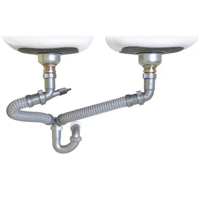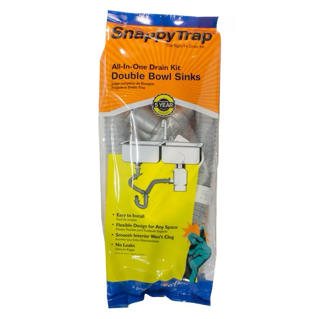 SnappyTrap Snappy Trap Kit de drenaje Fregaderos de cocina de doble tazón 1-1/2 pulgadas P-Trap Plástico negro