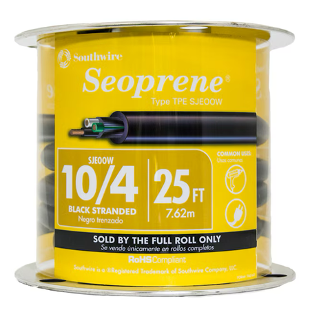 Southwire Cable de alimentación negro Sjeoow de 25 pies, 10 AWG, 4, por rollo