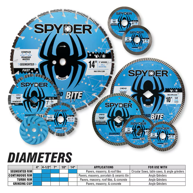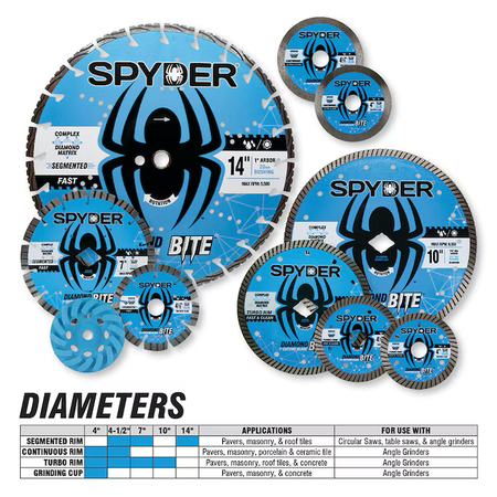 Hoja de sierra de diamante Spyder Diamond Bite de 4-1/2 in con borde turbo húmedo/seco