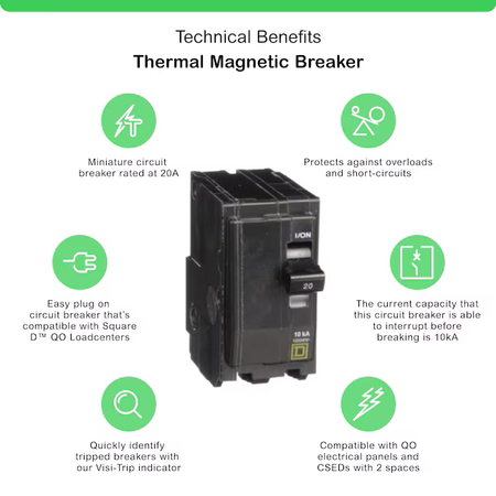 Disyuntor de disparo estándar de 2 polos y 20 amperios Square D QO