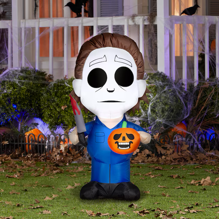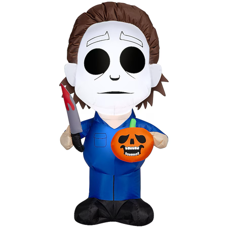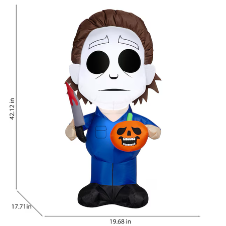 HALLOWEEN INFLABLE: Michael Myers estilizado inflable Airblown® de 3,5 pies de alto x 1,7 pies de ancho x 1,5 pies de profundidad para interiores y exteriores con cuchillo y calabaza