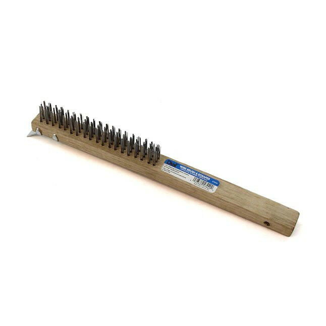 - Features Cerdas de alambre resistentes y raspador de metal.