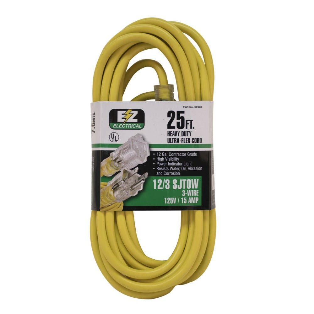 EZ-FLO EZ Electrical extension cords contain a neon lamp embedded in the female connector to let you know when the power is on. The circuit is designed so that if the lamp fails, it will not affect the operation of the extension cord. This is perfect for heavy-duty applications for contractors and home users. extension cord resists water, oil, abrasion and corrosion. The cord has flexibility and performs in extreme weather conditions to minus 58°F.