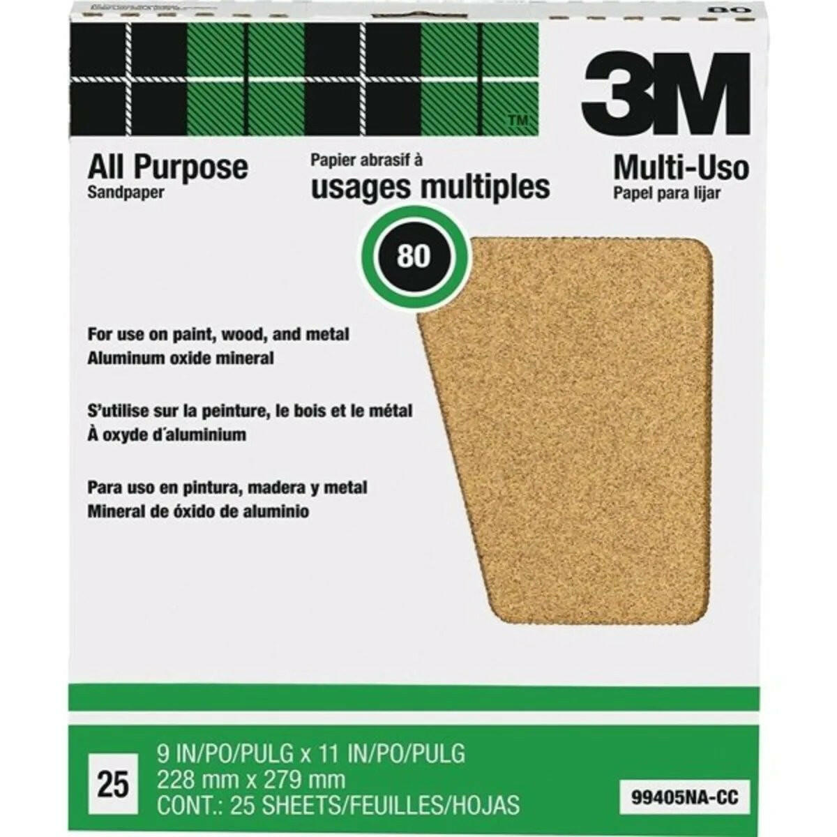3M 9" x 11" All Purpose 80D-Grit Sandpaper (25pack)