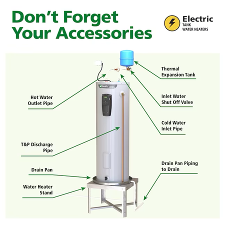 Premium heating elements, anode rod and fused ceramic tank shield provide superior tank protection and extend water heater life
