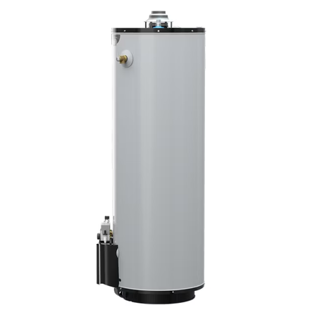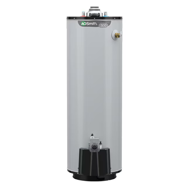 A. O. Smith's Signature 300 Series 40-gallon gas water heater provides reliable hot water for households with 3 to 4 people when sized appropriately. With an environmentally friendly 40,000 Btu/h Low-NOx gas burner, this flue damper model delivers 80 gallons of hot water in the first hour. This water heater does not require external power and is as simple as a standard atmospheric model. The automatic damper prevents cool air from traveling through the flue in standby mode to maintain overall heat and efficiency. The natural gas hot water heater is built with safety in mind. It has a safety system that reduces the risk of accidental flammable vapor ignitions. A factory-installed temperature and pressure relief valve and tamper-proof drain valve also ensure safe operation. This model is built to last. It features Tank Guard® which is designed to provide ultimate tank protection and increase lifespan of the water heater. This added protection comes with a 12-year limited warranty for additional peace of mind.