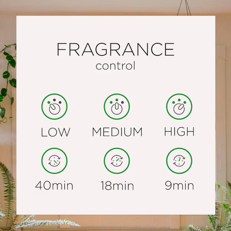 Each freshman refill provides up to 60 days (based on low setting) of automatic and continuous fragrance