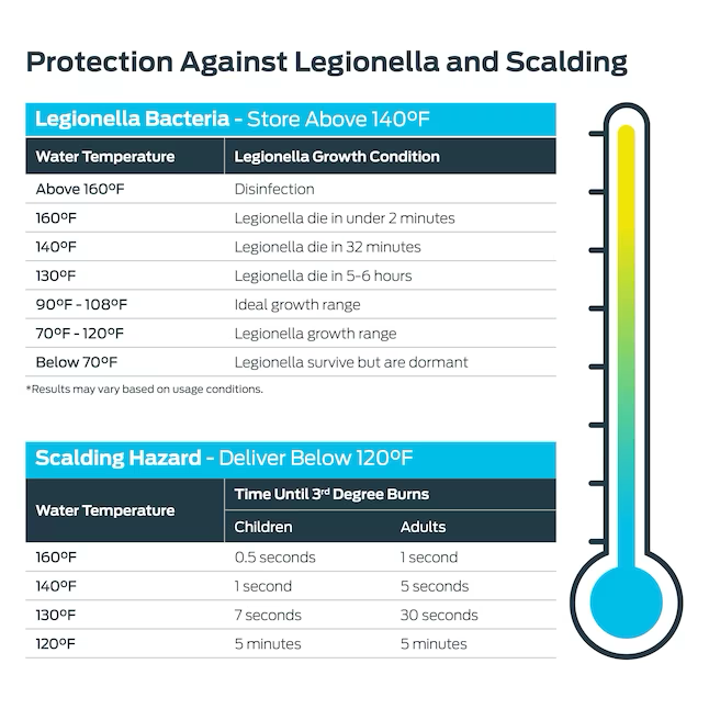 Protect your home from scalding by regulation output temperature to a safe 120 degrees F