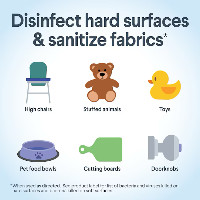 FAMILY FRIENDLY: Made with plant based active ingredient, free from fragrances and dyes, and safe around kids, pets and food when used as directed with no rinse required