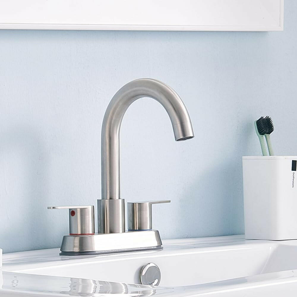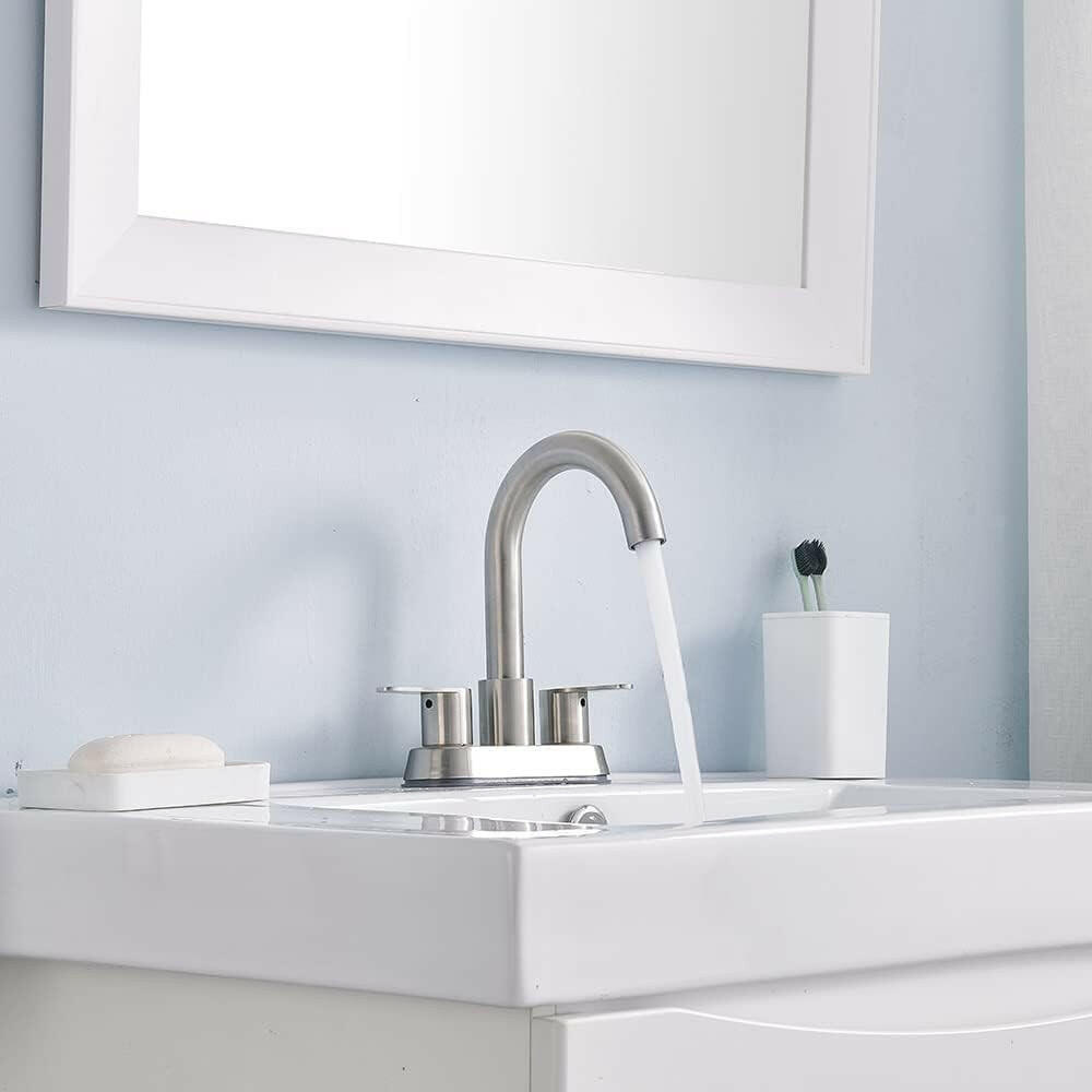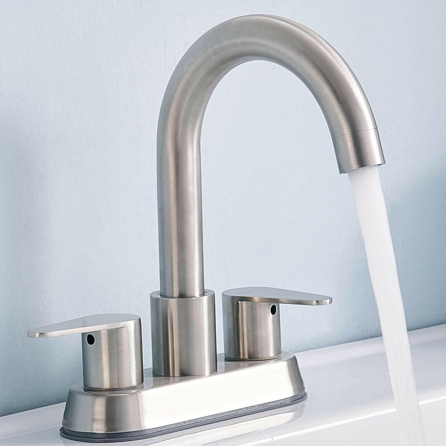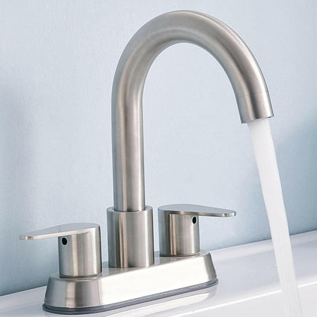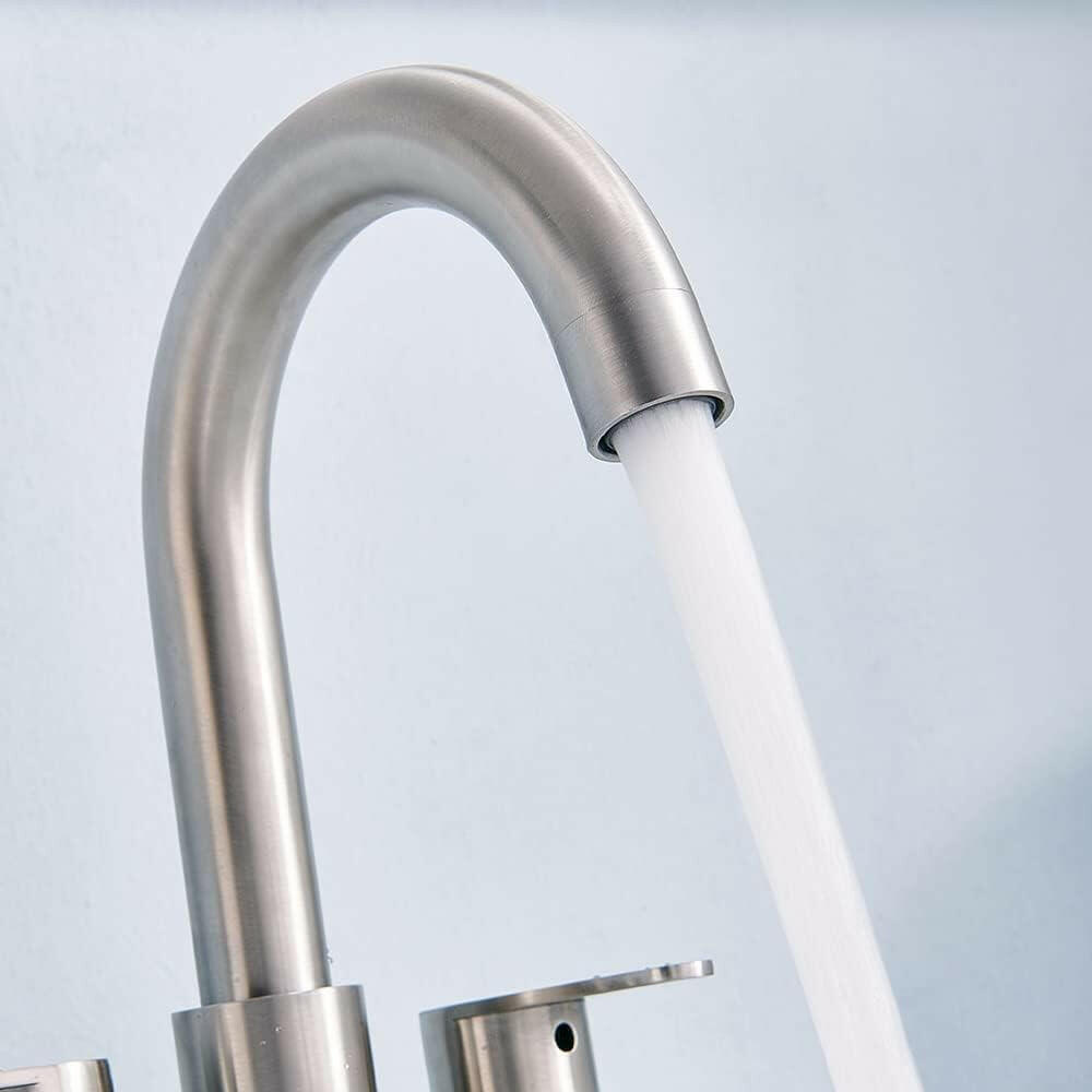 - Brushed Nickel Bathroom Faucet: Two handles control the hot and cold water, the water flow is soft, and it is completely suitable for RV or Bathroom use. With a three-hole bottom plate. Please note the product is not include drain assembly and water hoses.