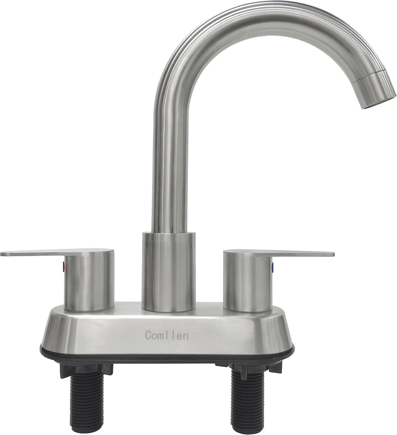 Comllen 3-Hole Brushed Nickel Modern Camper Two Handle Centerset Vanity Faucet