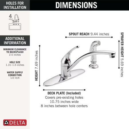 - Specifications Maximum Deck Thickness (Inches): 2.5 Spout Height (Inches): 7.688 Maximum Faucet Height (Inches): 7.688 Max Flow Rate: 1.8 GPM (6.8 LPM)