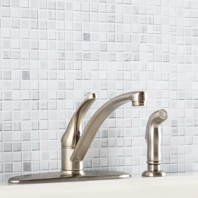 Delta Foundations Stainless Single Handle Low-arc Kitchen Faucet with Deck Plate and Side Spray Included