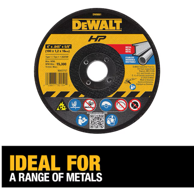 - Specifications Application Cutting For Use with Ferrous Metal No For Use with Aluminum No For Use with Stainless Steel Yes For Use with Angle Grinders No For Use with Tile No For Use with Asphalt No Grit N/A For Use with Chop Saws No Material Aluminum oxide For Use with Circular Saws No Package Quantity 5 For Use with Concrete & Masonry No Threads Per Inch 0 For Use with Cut-Off Saws No Wheel Type Grinding wheel For Use with Ductile Pipe No