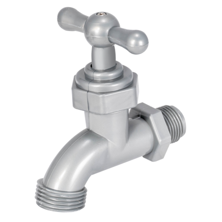 The EZ-FLO Hose Bibb is constructed of a heavy-duty Celcon body that resists corrosion and provides strength and durability. The valve is equipped with a 1/2 inch Male Iron Pipe (MIP) x 1/2 inch Male Hose Thread (MHT) outlet connection. Designed for irrigation purposes only, this valve is not intended for drinking water applications. The hose bibb can be used in hot or cold water systems up to a maximum pressure of 150 PSI and a temperature of 180-degrees Fahrenheit.