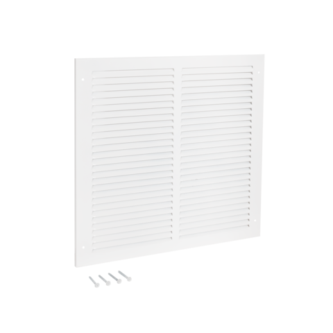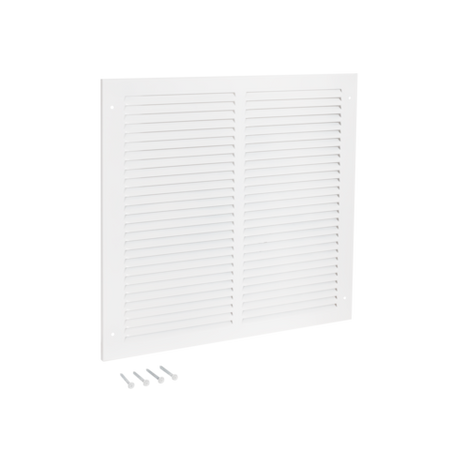 The EZ-FLO Return Air Grille is designed for wall or ceiling openings to help improve air circulation by extracting air from a room. It is made of heavy-duty steel with a white powder-coated finish that resists flaking and rust for a longer-lasting performance. It fits a rough duct opening 12 inches wide by 12 inches long. It features slotted vanes that are non-adjustable and in a fixed position. Includes (4) screws for easy installation. It is important to check the duct opening size before purchasing a duct or vent cover.