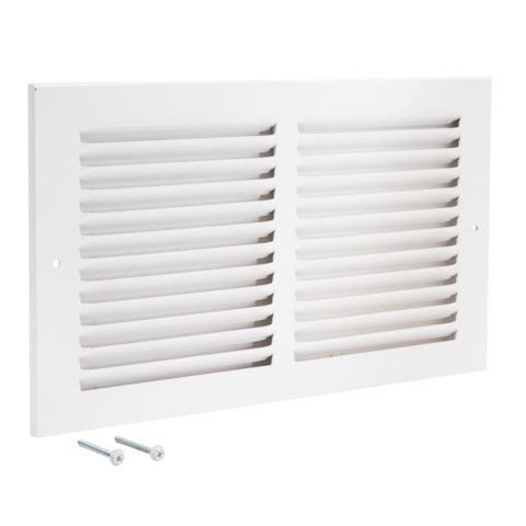 The EZ-FLO Return Air Grille is designed for wall or ceiling openings to help improve air circulation by extracting air from a room. It is made of heavy-duty steel with a white powder-coated finish that resists flaking and rust for a longer-lasting performance. It fits a rough duct opening 12 inches wide by 6 inches long. It features slotted vanes that are non-adjustable and in a fixed position. Includes (2) screws for easy installation. It is important to check the duct opening size before purchasing a duct or vent cover.
