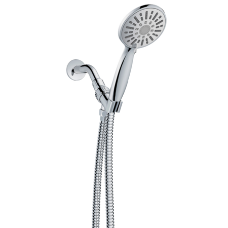 The ergonomic appearance of the handheld showerhead by EZ-FLO is perfect for any bathtub or shower space. Its simple design and chrome finish are a great addition that will easily match the rest of your bathroom accessories. This showerhead has 5 easy-to-set spray patterns to choose from! Enjoy a powerful massage after a long day of work, an ample-coverage setting for a rainfall sensation, or both of them at the same time! You can also set an inner-spray pattern for spot rinsing or an outer-spray setting for an angled range. The showerhead is equipped with a 5-foot stainless steel hose that allows for smooth maneuvering in any space, making it easy to remove from the showerhead holder or put it back in place. Equipped with self-cleaning rubber spray jets. All parts are included for an easy installation.