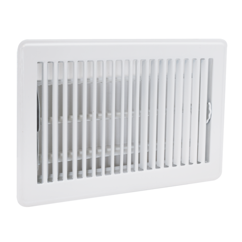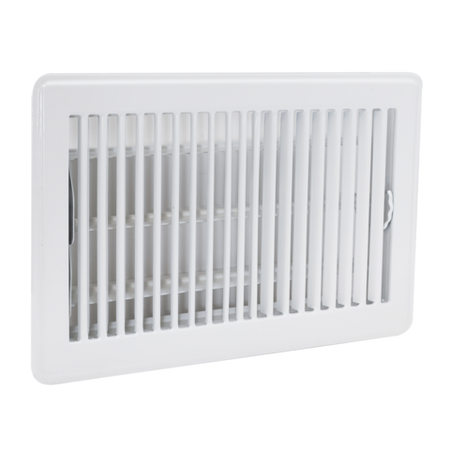 The EZ-Flo Floor Register is designed for floor openings to control airflow for increased comfort this register ensures quiet airflow from your central air system. It is made of heavy-duty steel with a white powder-coated finish that resists flaking and rust for a longer-lasting performance. It fits a rough duct opening 6 inches wide by 10 inches long. It features 1-way air deflection and three adjustable dampers for easy airflow adjustments. Drop-in design requires no special hardware. It is important to check the duct opening size before purchasing a duct or vent cover.
