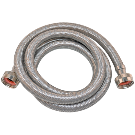 Eastman® 8 ft. stainless steel washing machine Hose is the standard in washing machine supply lines. Its quality is determined by what you can't see. The supply line features a PVC core, multi-filament braided nylon reinforcement, a clear vinyl outer shell, and a grade 304 Stainless Steel braided exterior that is designed to prevent kinking and crimping. This flexible supply line resists corrosion and is easy to install.