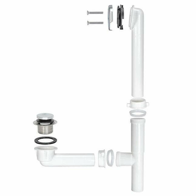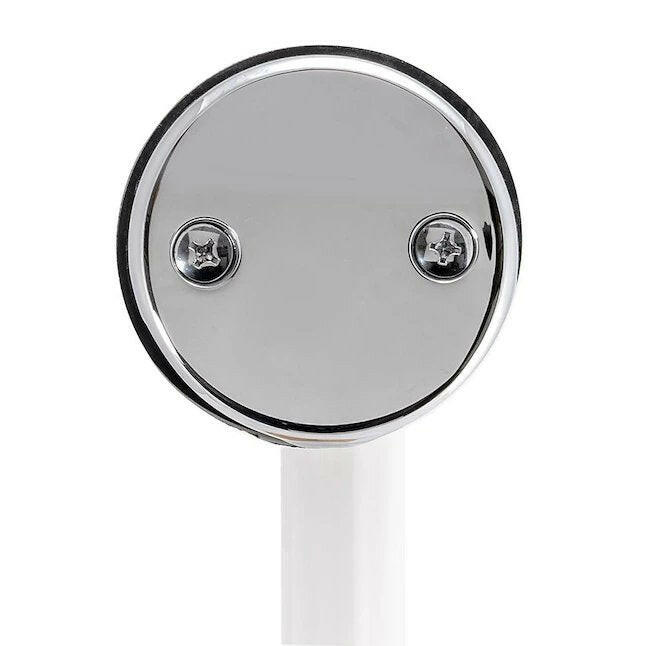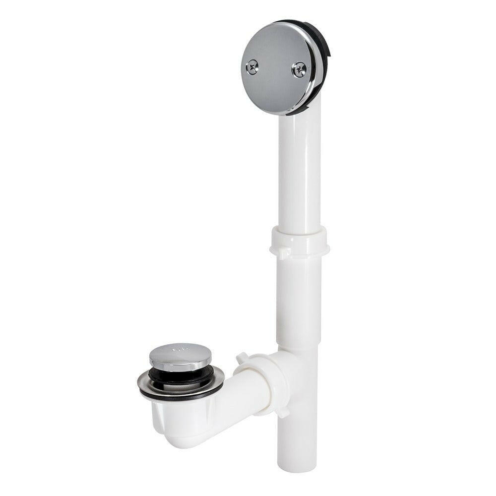 The Eastman Tip-Toe Two-Hole Bath Waste is designed to fit standard sized bathtubs. It is constructed of durable plastic for a strong and rust resistant connection. The tubing measures 1-1/2 inch and comes with a tip-toe stopper. A chrome-plated finish resists corrosion and provides a sleek and modern look. A two-hole overflow plate is also included.