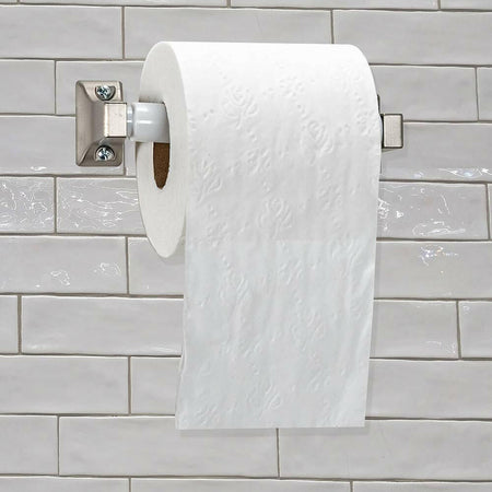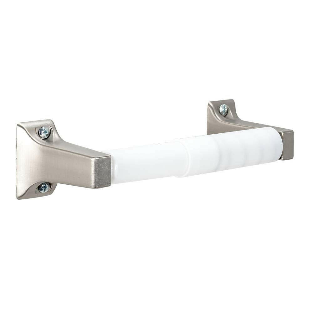 The EZ-FLO Toilet Paper Roll Holder is the ideal accessory for your bathroom. The contemporary and sleek design details are stylized to fit with most bathroom decor. Exposed screw hardware and white toilet paper roller included. Easy to install. The simple toilet paper holder makes your bathroom look clean and finished. Brushed Nickel Finish