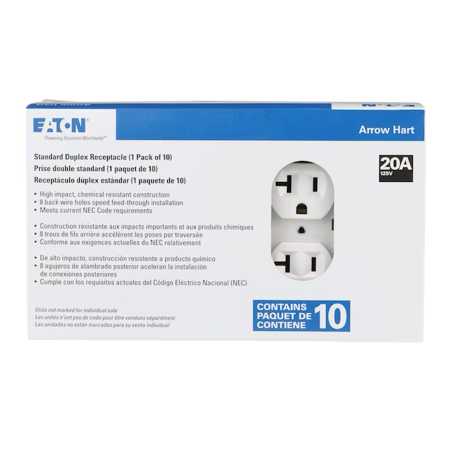 Eaton 20-Amp 125-volt Commercial Duplex Outlet, White (10-Pack)