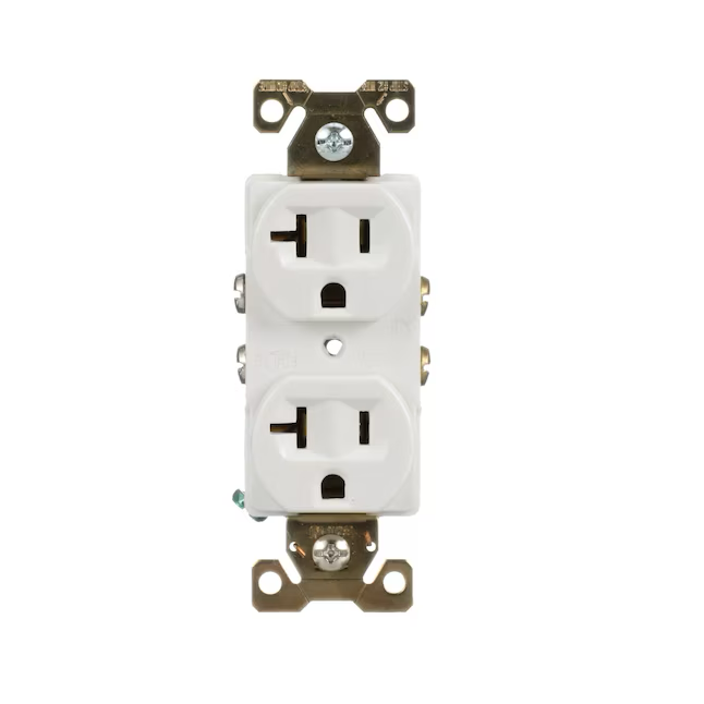 • White finish industrial grade duplex receptacle offers a 20A, 125V capacity able to withstand the most abusive environments and excel in applications that require the highest level of performance