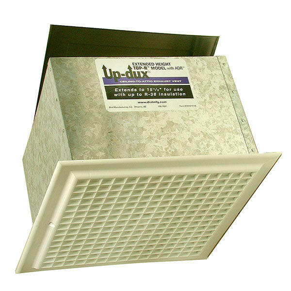 Up-Dux™ is rated 900 CFM nominal free air flow. Install one Up-Dux™ for each 900 CFM rating. Cost free attic power-venting. Attic temperatures can reach 140°F or more. Requires sufficient attic ventilation. At 190°F ADR’s fusible links degrade and release anti-draft steel panels, blocking air flow between living areas and attic.