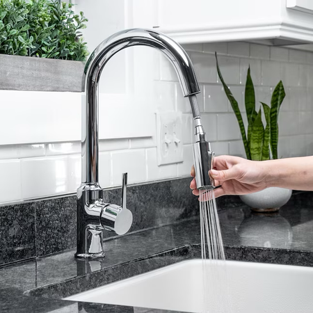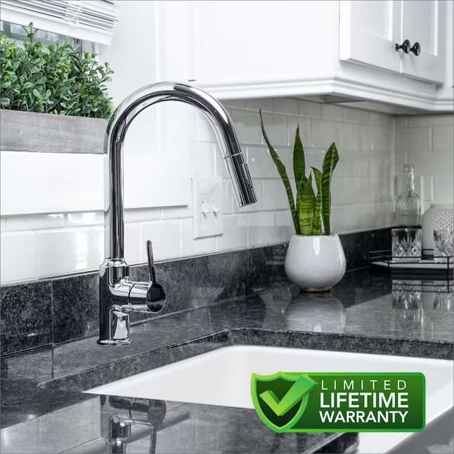 • Features ADA Compliant Yes Lowe's Exclusive No Activation Method Handle Manufacturer Color/Finish Chrome Antimicrobial No Max Flow Rate 1.8 GPM (6.8 LPM) Built-In Water Filter No Mounting Location Deck-mount Collection Name Metro Number of Faucet Handles Single handle Commercial/Residential Residential Number of Spray Settings 1 Deck Plate Included Yes Rust Resistant Yes Docking Technology N/A Secure Docking Yes Easy-Cleaning Nozzles Yes Side Spray Included No Faucet Type Pull-down Soap or Lotion Dispenser No Fingerprint-Resistant No Spout Reach (Inches) 8 Finish Technology N/A Spray Technology N/A Fixture Color Family Chrome Spray and Stream Yes Fixture Finish Polished Style Modern/Contemporary