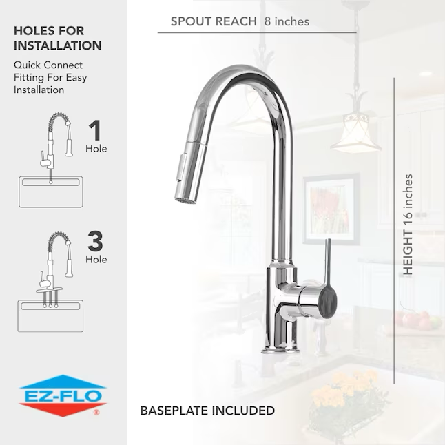 EZ-FLO Metro Chrome Single Handle Pull-down Kitchen Faucet with Deck Plate