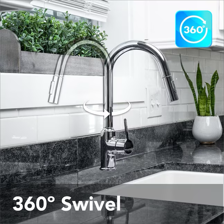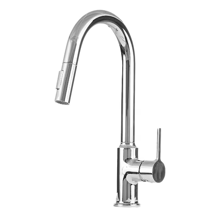 The High-Arc Kitchen Faucet with Pull-Down Sprayer from the Metro Collection by EZ-FLO features a sleek design with a European flair. This kitchen faucet satisfies even the most discriminating tastes. It comes with a single metal lever handle and it is equipped with a lifetime ceramic disc cartridge and Neoperl aerators for a continuous refreshing stream of water. It has a slim design with a modern and sophisticated appearance, giving your kitchen sink a clean and beautiful finish. It is equipped with a pull-down narrow spray head with a switch that allows you to go from a fresh stream to a strong rinsing spray, covering all your cleaning needs. The chrome finish resists flaking and corrosion for increased durability. This kitchen faucet is Lead-free for safe water drinking, UPC and NSF approved. EPA Watersense certified.