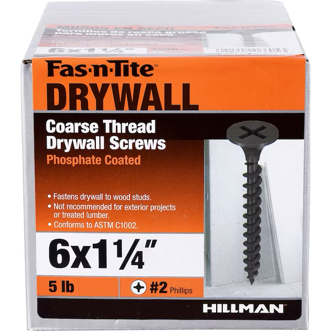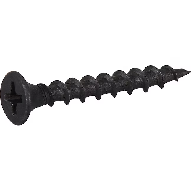 Drywall screws have been made specifically to combine drywall to either a wood or metal. A number 2 Phillips head makes the driving of this screw easily ready and the sharp tip screw is great for piercing wood. A black phosphate finish on the screw makes them easy to see as well will easily combine with your paint and mudding.