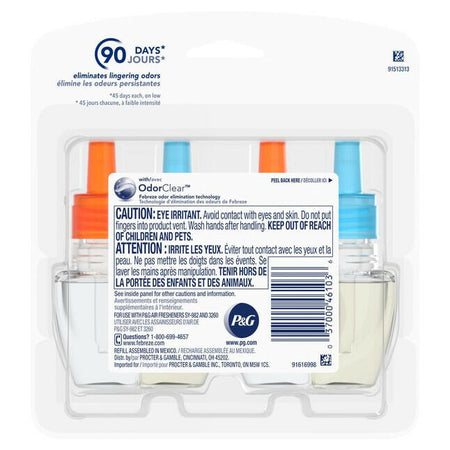 Includes (2) scented oil refills for fade defy plug air freshener