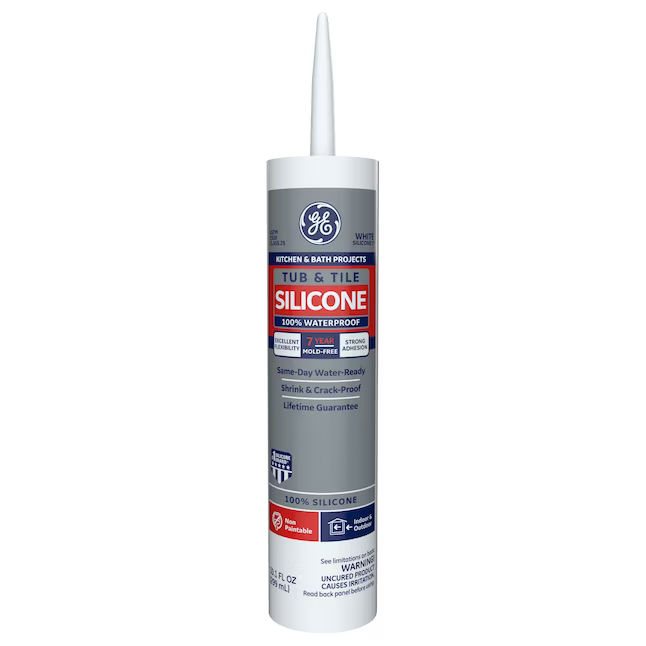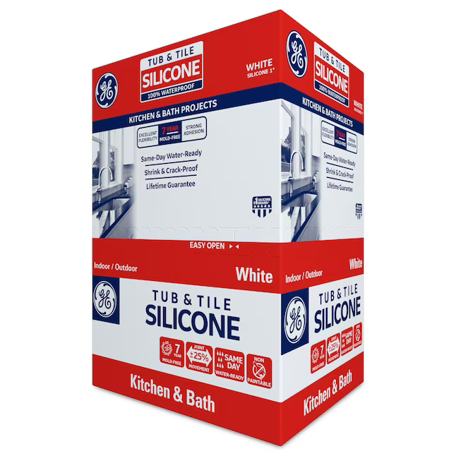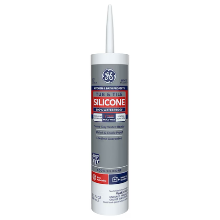 From the #1 Silicone Brand, GE Tub and Tile Silicone 1 sealant is a 100% silicone and 100% waterproof sealant ideal for areas susceptible to moisture like sinks, tubs, showers, fixtures, countertops, backsplashes and plumbing projects. Tub and Tile Silicone 1 sealant is flexible with strong adhesion and resistant to stain-causing mold and mildew growth with 7-year mold-free product protection. Backed by a lifetime guarantee. Adheres to: most metals, plastics and woods, glass, drywall, plaster, granite, cultured marble, ceramic and porcelain tile, natural stone, cement board, composites, Formica, fiberglass, aluminum and painted surfaces.