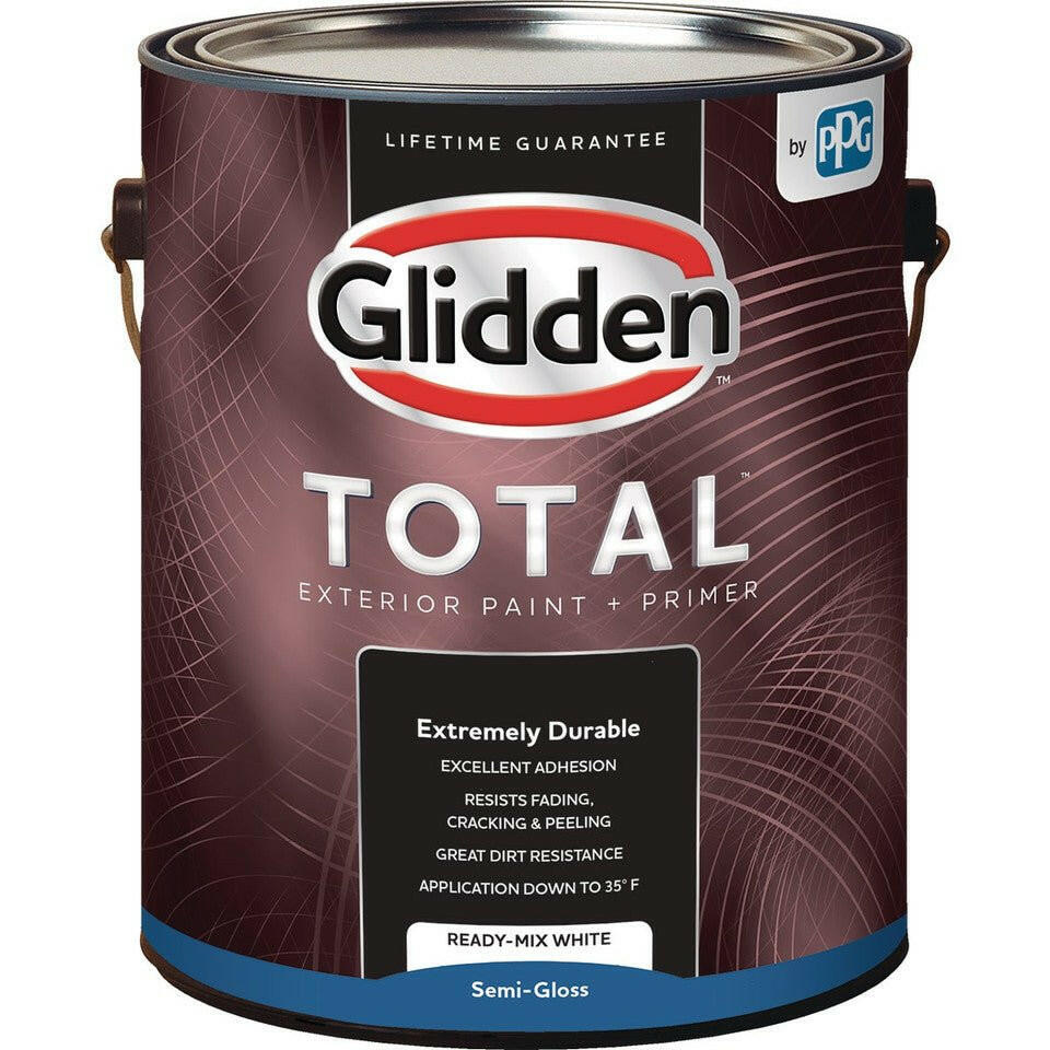 Glidden Total Exterior Paint + Primer Semi-Gloss Ready Mix White 1 Gallon