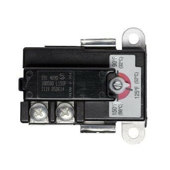 This replacement thermostat is designed for use with double element water heaters. It offers an energy-efficient adjustable temperature range from 90-degrees F to 150-degrees F. The Therm-O-Disc style thermostat is equipped with a built-in safety switch that prevents the water heater from overheating. UL listed. Built for compatibility with most brands of water heater manufacturers.