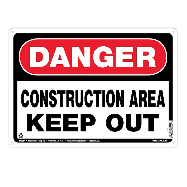 Using this Danger Construction Area Keep Out sign (10-in x 14-in), warn pedestrians and workers to remain vigilant as they traverse through or near a potentially dangerous area.
