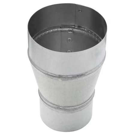 This Imperial Increaser/Reducer is used to effectively reduce or increase the diameter of galvanized round perimeter pipe when making connections. The no-crimp connector is used to transition from 4-in pipe to 3-in pipe in an HVAC system. It features hemmed collar edges for strength and a snug fit, and is made from 30-gauge galvanized steel for durability. This increaser/reducer is easy to install and is suitable for use in most heating, venting and air conditioning applications.