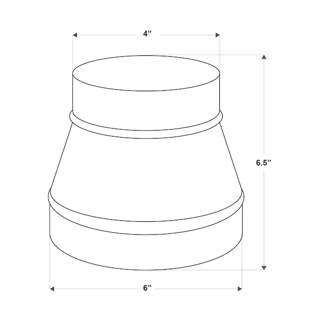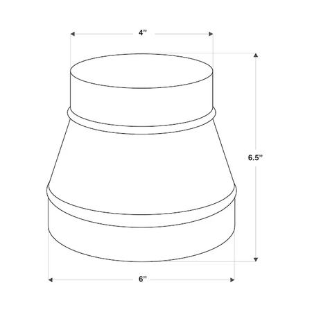 This Imperial Increaser/Reducer is used to effectively reduce or increase the diameter of galvanized round pipe when making connections. The no-crimp connector is used to transition from 6-in pipe to 4-in pipe in an HVAC system. It features hemmed collar edges for strength and a snug fit, and is made from 30-gauge galvanized steel for durability. This increaser/reducer is easy to install and is suitable for use in most heating, venting and air conditioning applications.