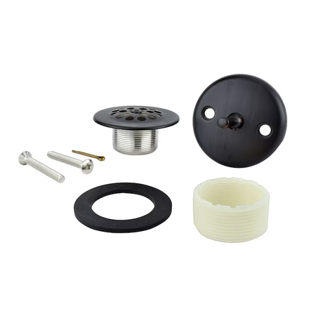 The Keeney® Triplever Style Bath Tub Trim Kit has a Oil rubbed bronze finish and fits waste shoe openings of both 1-1/2 in. or 1-3/8 in. Includes faceplate, cotter pin, screws, dome strainer cover and strainer. Keeney is a leading manufacturer and distributor of tubular drainage products. Founded in 1923, the Keeney product line includes under-sink drainage, quarter-turn valves, bath drains, toilet repair parts and more.