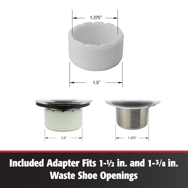 • Fits waste shoe opening of both 1-1/2 in or 1-3/8 in