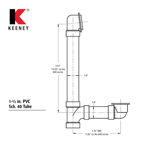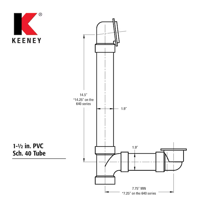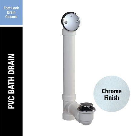 The Keeney® Polished Chrome Foot Lock Drain is a complete bath drain that includes 1-1/2 in. Schedule 40 PVC piping with polished chrome exposed trim. This drain kit fits all standard tubs and includes all nuts and washers necessary for installation. Keeney is a leading manufacturer and distributor of tubular drainage products. Founded in 1923, the Keeney product line includes under-sink drainage, quarter-turn valves, bath drains, toilet repair parts and more.