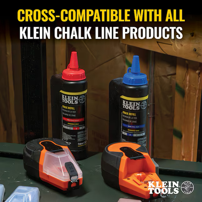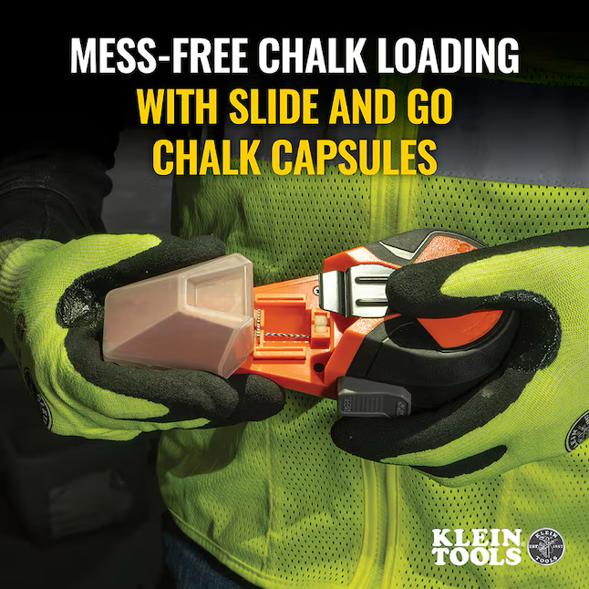 Mess-free and quick chalk loading with Klein Tools replaceable capsules (Cat Nos CHLK00R and CHLK00B)