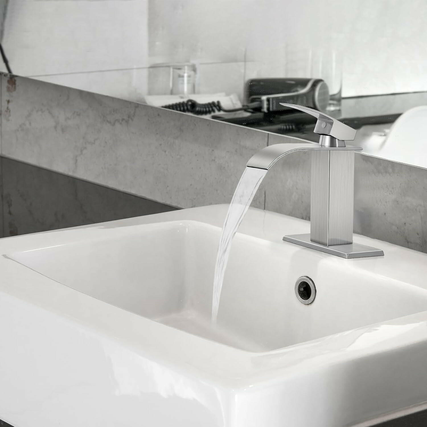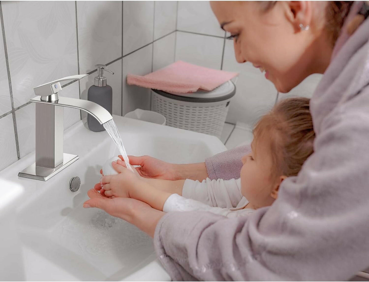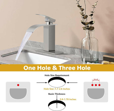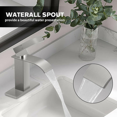 - 【WATERFALL FAUCET】 Waterfall Spout and Single Handle Stream Can Help Users Easily Adjust to The Appropriate Water Flow and Temperature.That Provide Larger Areas Water Flow And A Beautiful Water Presentation