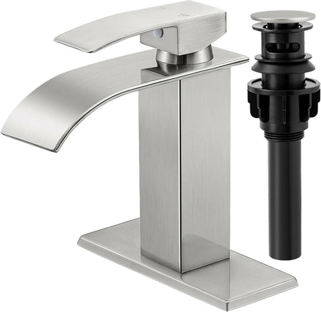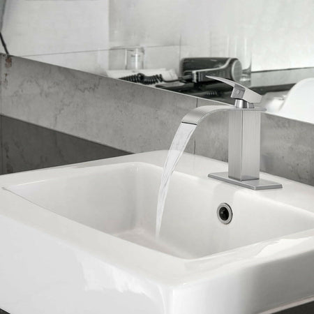 KZH Single Handle Waterfall Bathroom Faucet (Brushed Nickel)