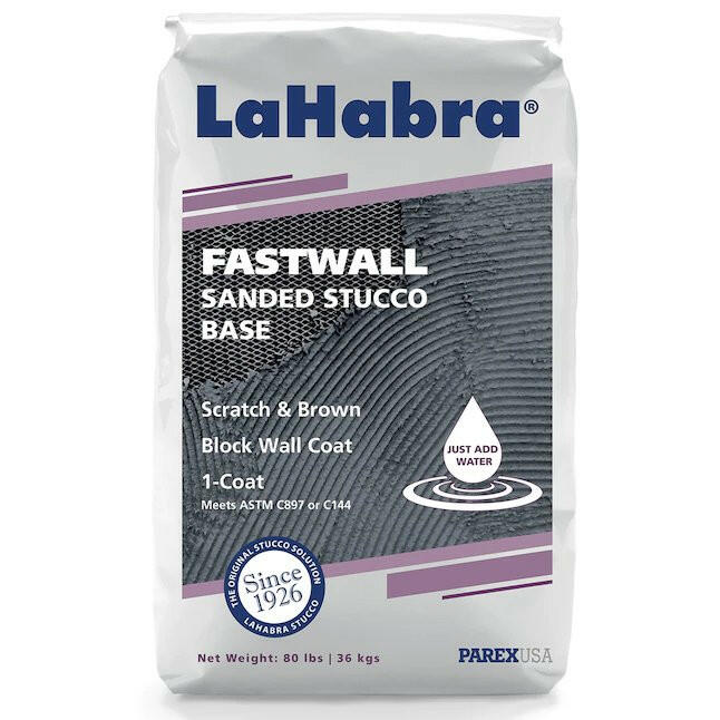 - Features Coat Type Base coat Premixed No Compression Strength (PSI) 2583 Set Time (Minutes) 45 Curing Time (Days) 2 Unit of Measure Pound(s) Drive on Time (Hours) 24 Unit of Measure Quantity 80 Fast Setting No VOC Level 0 Material Stucco Package Type Bag Working Time in Minutes 45