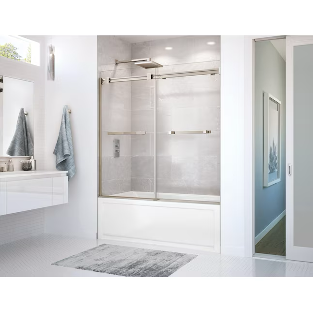 MAAX Duel Brushed Nickel 56-in to 59-in x 59-in Semi-frameless Bypass Sliding Bathtub Door